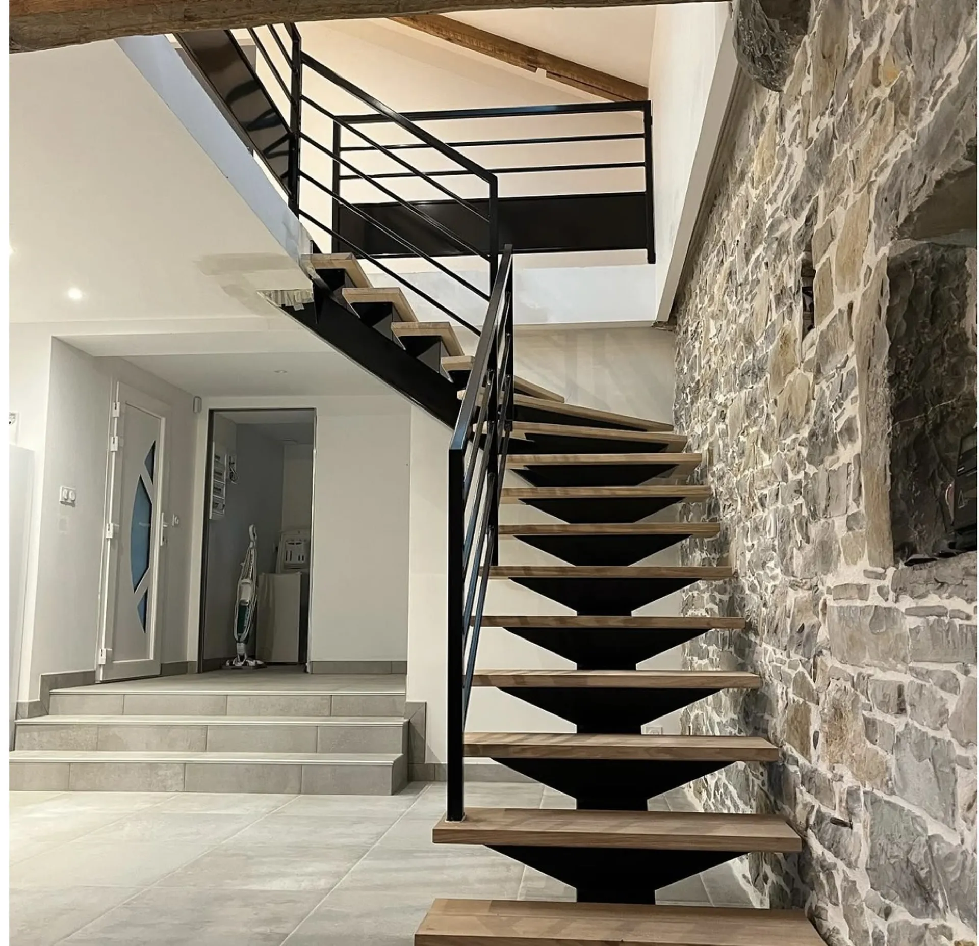 Mélange de matériaux : Alliance élégante de l’acier avec des marches en bois chaleureux, en verre aérien ou tout acier pour un look industriel affirmé.